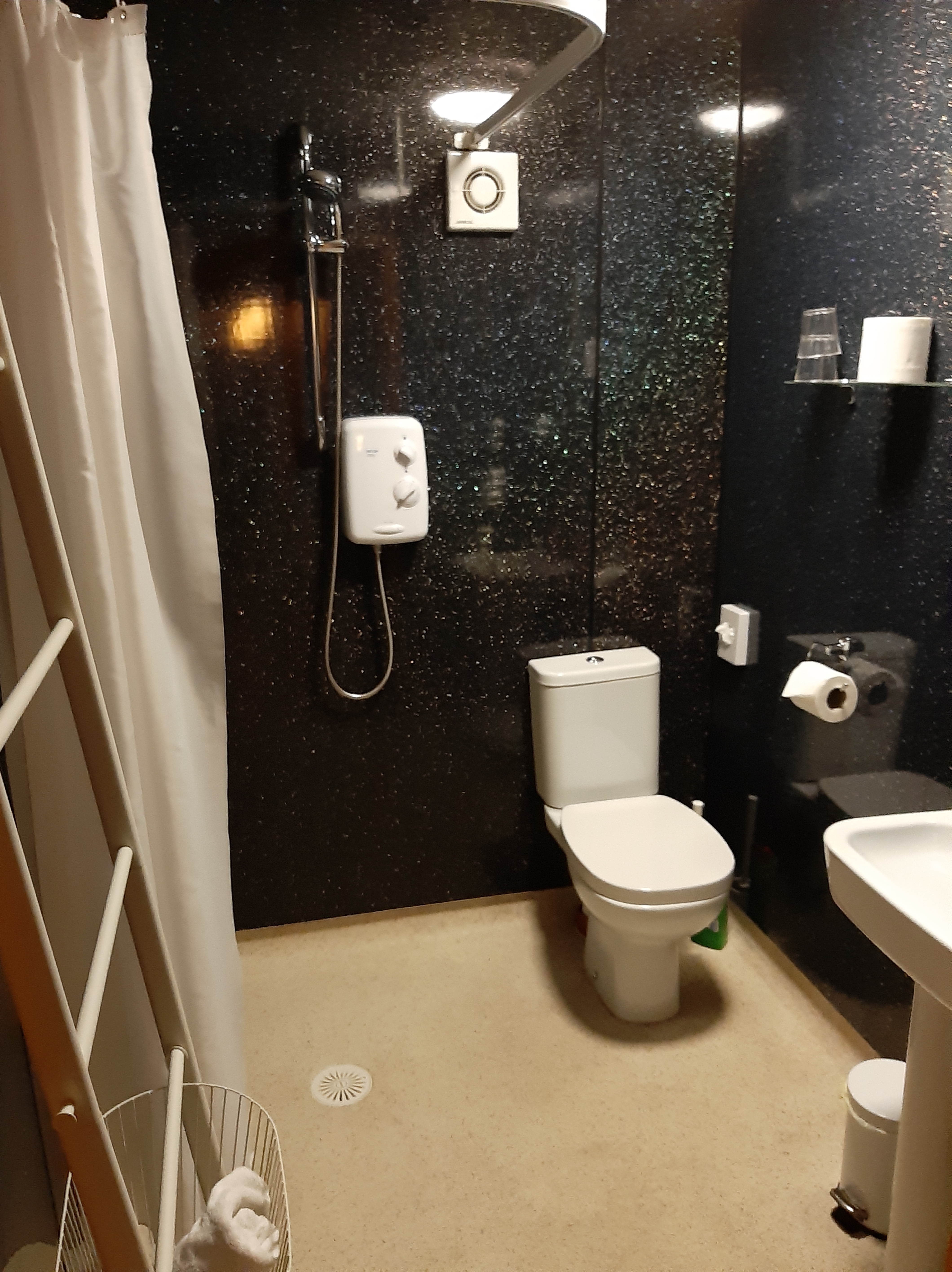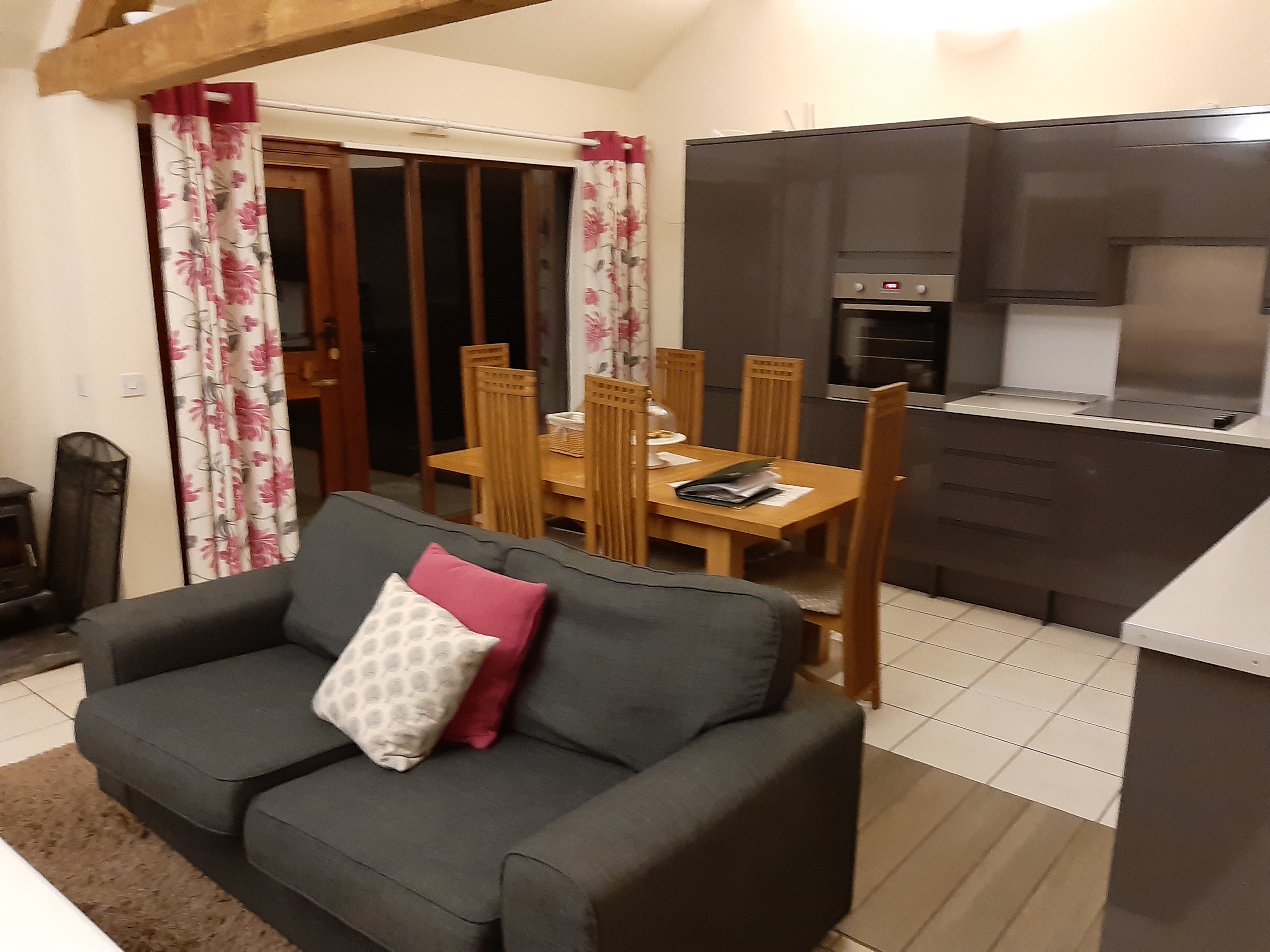 The accommodation was well laid out and equipped and very comfortable. Knowing it was 2 mums coming for a break, they had set the one twin up as a king room with the beds pushed together and an insert between the beds. All rooms were en suite accessible wet rooms (with seats and disability supports etc.) The spaces within the accommodation were bright and airy with modern decoration that tastefully incorporated the character features. A nice addition was the woodburner (complete with a basket of logs and some fire lighting equipment). It helped with the requirement to relax (I do love watching flames).