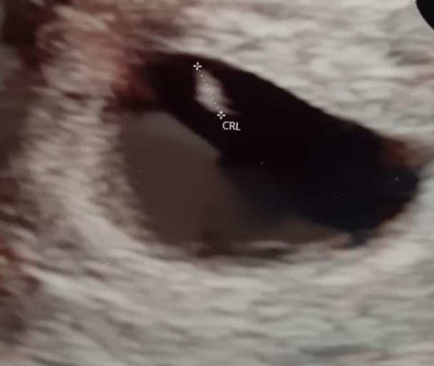Immediately seeing the yolk sac, the proof was there. Jill searched for baby but it was hard to find, as it was so early in the pregnancy. A trans-vaginal scan was performed, the baby located, a heartbeat seen and measurements taken to give an approximate date (which was in line with how it was dated later in the pregnancy).